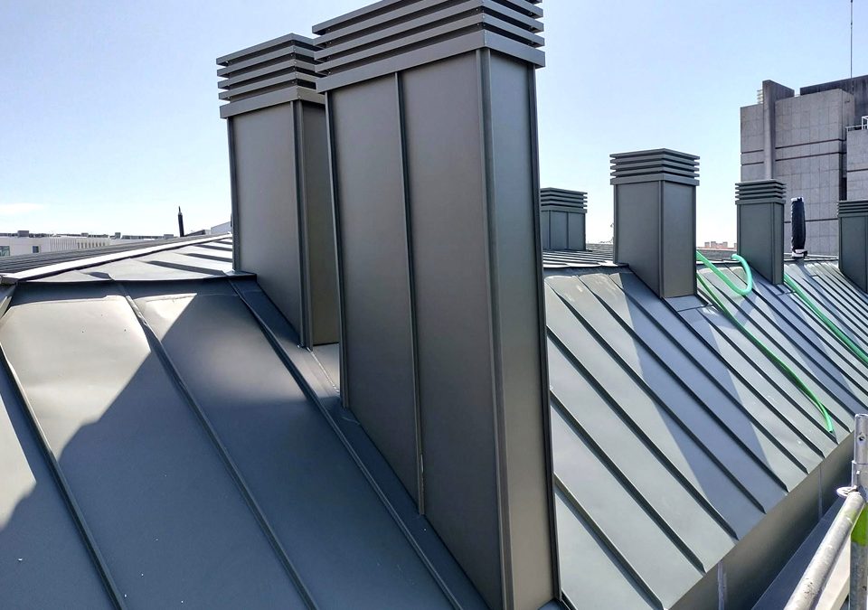 Telhados de Edifícios Comerciais e Residenciais: O revestimento em zinco oferece uma excelente solução para telhados expostos às condições climáticas, garantindo resistência e longevidade.